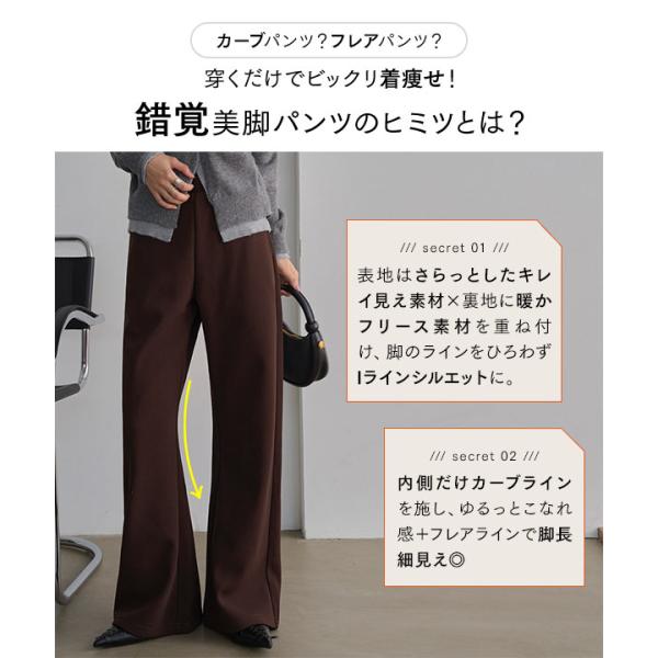 裏起毛 パンツ レディース 冬 ブーツカット 錯覚美脚カーブパンツ 裏フリース あったか ロング丈 M4351