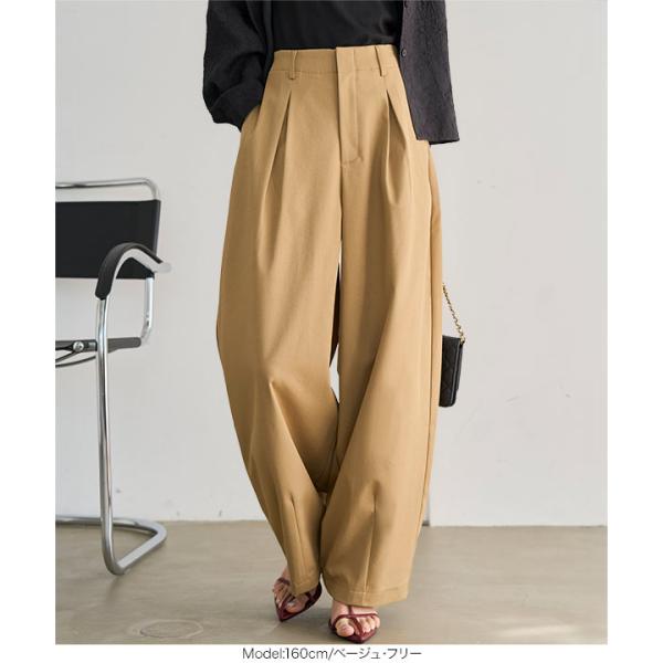 ワイドパンツ タックワイドカーブパンツ レディース 40代 50代 チノパン 大人カジュアル ズボン ボトム M4381