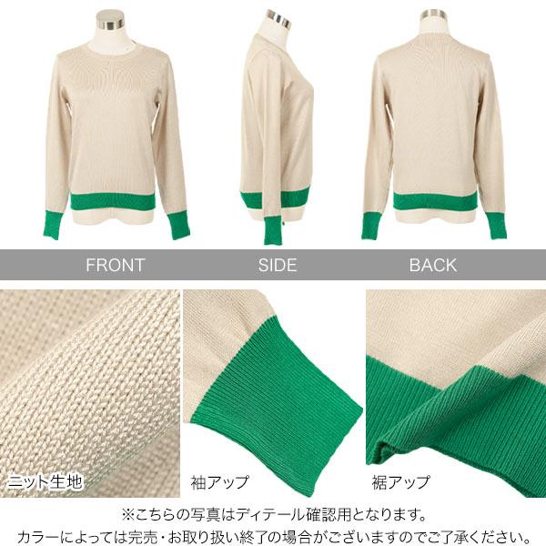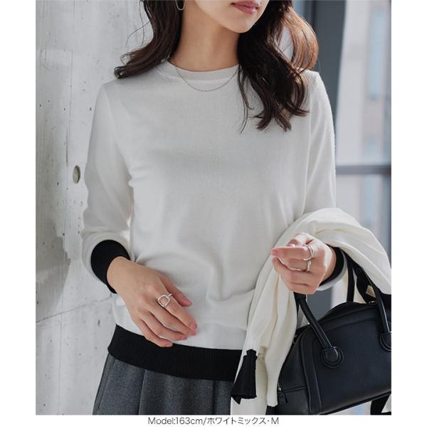 ニット レディース 長袖 セーター トップス 40代 50代 バイカラーニット ベーシック 丸首 ハイゲージ N1258