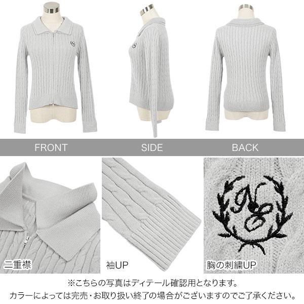 ダブルジップ ニット ケーブルニット セーター トップス レディース 襟付き 長袖 ライトアウター N1267