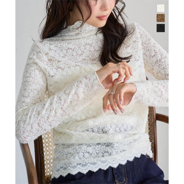 レース トップス レディース 長袖 起毛 シアー ハイネック 30代 40代 50代 インナー 上品 大人 C7816