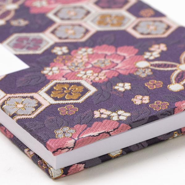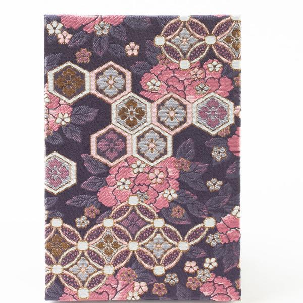 ビニールカバー付き御朱印帳 納経帳 七宝牡丹 大判12x18cm 西陣金襴 蛇腹式