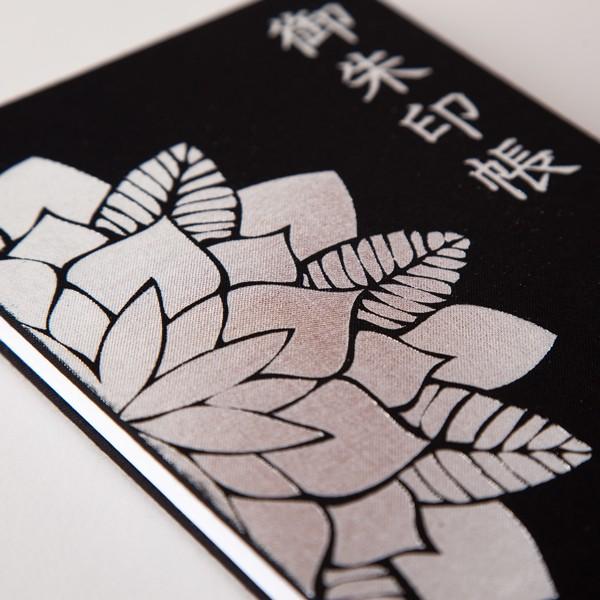 本身は48ページ、サイズは12cm x 18cm。一般的な小型御朱印帳より一回り大きく、迫力ある御朱印が頂けます。2枚の紙を貼り合わせていますので、墨の裏移りがしにくい仕様になっています。また、メール便での発送ご希望の場合は送料無料となります。