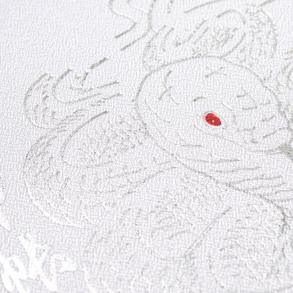 お客様からのご意見で商品化してみました。温和な性格と幸せの象徴として有名な白蛇様です。白蛇は弁財天の使いとして、富をもたらす水神とも言われています。デザインの特徴として、目は赤色の箔で打ち込んでいます。