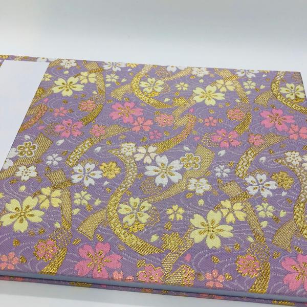 見開き御朱印帳 納経帳 京都西陣金襴 流水文様 2色 黄金色&藤紫 B5横型特大判26x18cm 蛇腹式 メール便送料無料