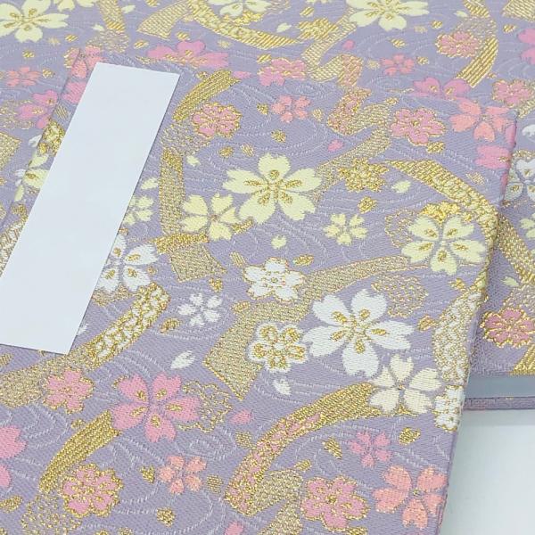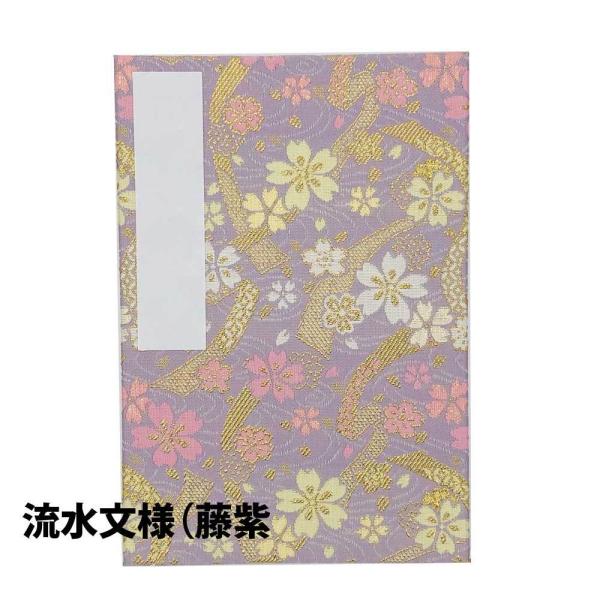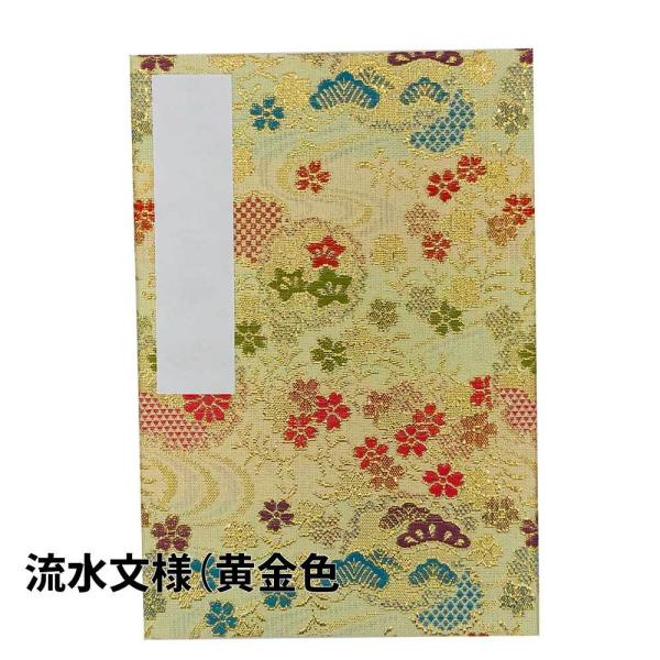 ビニールカバー付き御朱印帳 納経帳 流水文様 2色 黄金色&藤紫 大判12x18cm 西陣金襴 蛇腹式
