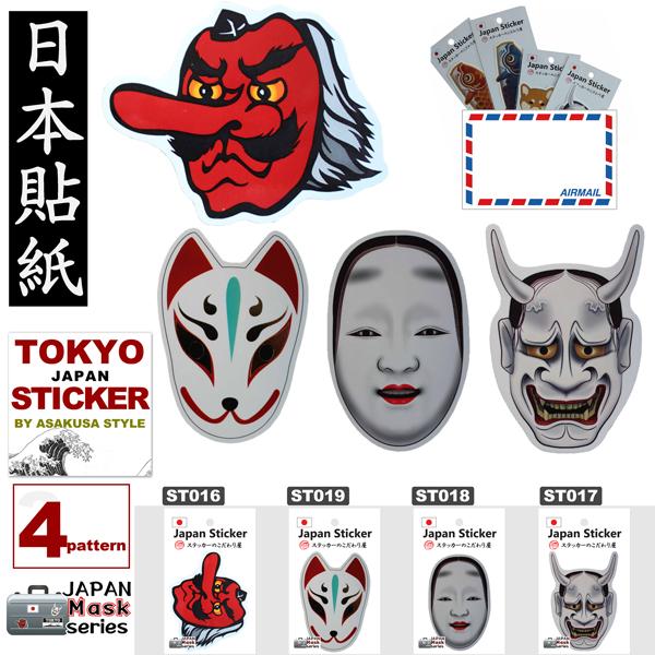 ステッカー お面 JAPAN STICKER MASK スーツケース スマホ PC 外国人のお友達に ホームステイに お土産に kodawari-sticker 普通郵便 送料無料