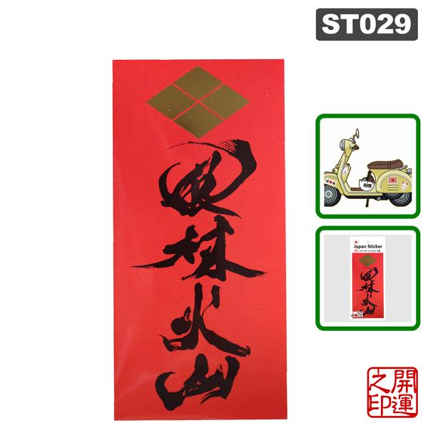 ST029風林火山:サイズ 140×67mm(台紙サイズ180×77mm)素材:塩ビ艶、箔押し