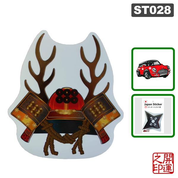 ST028侍兜 :サイズ 75×83mm(台紙サイズ120×77mm)素材:塩ビ艶、箔押し