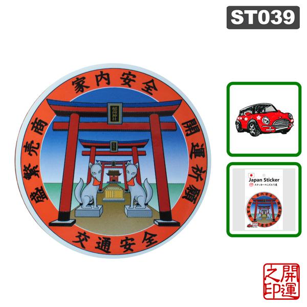ST039鳥居と狐Sサイズ 75mm(台紙サイズ120×77mm)塩ビ艶