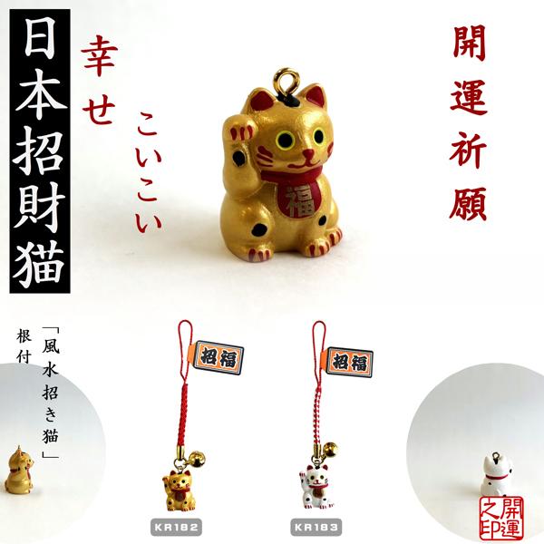根付 風水招き猫 金 白 日本吉祥 LUCKY CHARM お守り 参拝グッズ 神社 交通安全 家内安全 開運招福 商売繁盛 縁起物