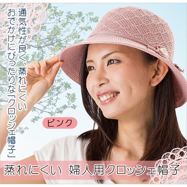レディース ハット 帽子 花 蒸れにくい 手編み風 蒸れにくい 婦人用クロッシェ帽子 ピンク