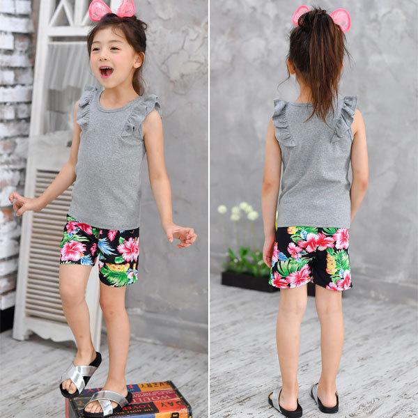 韓国子供服 韓国子ども服 韓国こども服 Bee カジュアル ナチュラル キッズ 女の子 男の子 花 ハイビスカス リーフ ヤシの木 ショート 春 夏 90 100 110 120 130 140 ◇ハーフパンツ◇
