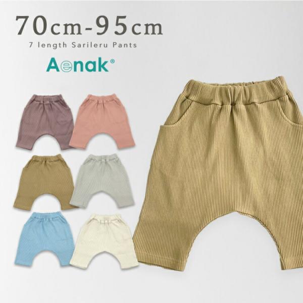 子供服 サルエルパンツ 七分丈 リブパンツ 70 80 90 95 ベビー ボトムス くすみカラー 男の子 女の子 赤ちゃん 普段着 男女兼用 かわいい メール便送料無料