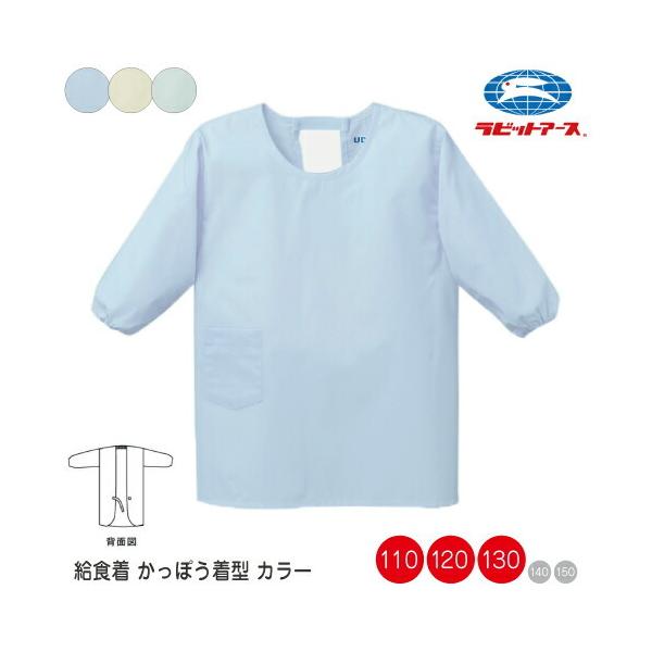 給食着かっぽう着型 カラー 110 120 130cm |N#500| 制菌加工 長袖 マジックテープ 青 緑 黄色 学校給食 給食エプロン 無地 割烹着 |2点までメール便可