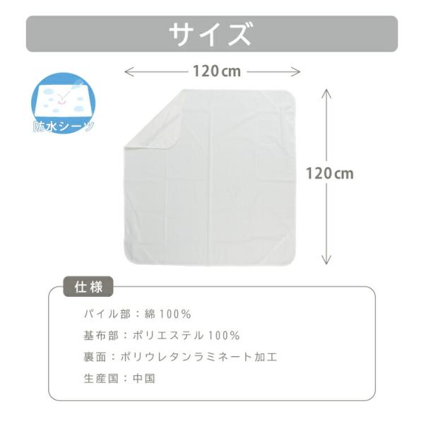 洗濯機で洗える おむつ替え 正方形 120 寝返り マット 用 マットレスカバー 防水シーツ おねしょやはき戻しなどの、お布団へのしみ込みをを防ぐ!