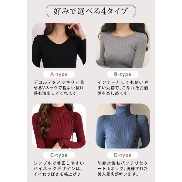 ニットトップス レディース 長袖 春 夏 春夏 黒 白 リブニット トップス ニット Vネック クルーネック ハイネック タートルネック セーター カジュアル