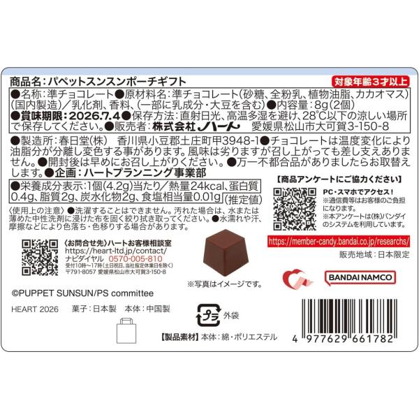 【 専用紙袋付き 】ハート(Heart) パペットスンスン ポーチギフト 準チョコレート 食玩/1個 ポーチ