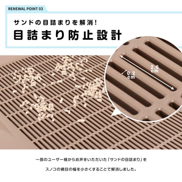 ◇◇ 【特長】 ●ニオわない&キレイ続く、猫用システムトイレです。 ●99.9%抗菌シートとサンドでW消臭 ●撥水で足元サラサラ清潔 ●愛猫1頭(体重8kgまで)のデオトイレ使用時、シートは週1回、サンドは月1回交換でお手入れカンタン ●ウンチをした場合は早く取り除いてください。 ●すべての菌を抑制するわけではありません。 【仕様】 ●本体サイズ:約幅42cm×奥行54cm×高さ43cm 【猫の室内用トイレ】 材質:ポリプロピレン 【猫の室内トイレ用砂】 主な素材:ゼオライト、シリカゲル 【猫の室内トイレ用シート】 主な素材:ポリオレフィン・ポリエステル不織布、綿状パルプ、吸水紙、高分子吸水材、ポリエチレンフィルム、抗菌剤、ホットメルト接着剤、香料入り消臭マイクロカプセル ●生産国:日本 ●原産国:日本