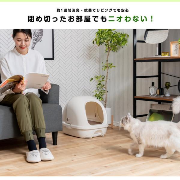 猫トイレ デオトイレ フード付き本体セット アイボリー ニオイ菌99.9%抑制 ゆったり 飛び散り防止 清潔 抗菌 シンプル 猫用トイレ 猫砂 ユニ・チャーム