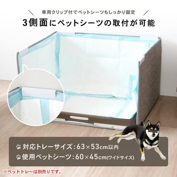 犬,床,床マット,傷防止,傷防止マット,トイレトレーニング,ワイド,トイレトレー ,シーツ,介護,おしっこマット,おしっこ,おもらし,便利,便利グッズ ◇◇ 【特長】 ●おしっこの飛び散りガード ●防水・撥水加工生地 ●3側面にペットシーツ取付可能※付属クリップ使用 【仕様】 ●使用時サイズ(約):幅63.5×奥行53.5×高さ35.0(cm) ●折り畳みサイズ(約):63.0×37.0(cm) ●ペットシーツ固定用クリップサイズ(約):10.5×2.5(cm) ●対応トレーサイズ:幅63cm×奥行53cm以内 ●組成 側面表生地:ポリエステル100%(撥水加工)・TPU(防水加工) 側面・底面中生地:ポリプロピレン(防水加工) 底面裏生地:ポリエステル100%(滑り止め) 中板材:ポリプロピレン クリップ:塩化ビニル樹脂 ●付属品:クリップ×4 【同シリーズの防撥水マット(別売り)の併用でさらに快適】 ●側面にシーツ取り付け&防撥水マット (別売り)JAN:4522831293322 マルチ防撥水マットL