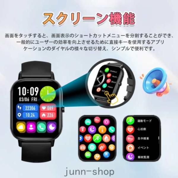 2026最新 スマートウォッチ 24時間健康管理 Bluetooth通話機能付き ケットウチ測定 血圧 血中酸素 歩数計 文字盤 睡眠 歩数計 着信通知 爆買