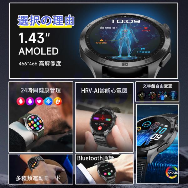 2026最新 スマートウォッチ 心拍数 血中酸素 ケットウ値 血圧 Bluetooth通話機能付き 睡眠管理 体温 日本製センサー ECG HRV 爆買