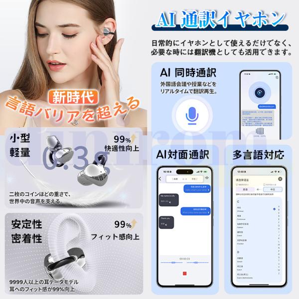 2026最新 イヤホンAI翻訳機 双方向同時通訳 133言語対応 音楽/通話対応 音声翻訳 ワイヤレスイヤホン クリップ式 翻訳機 iOS/Android 超軽量 爆買