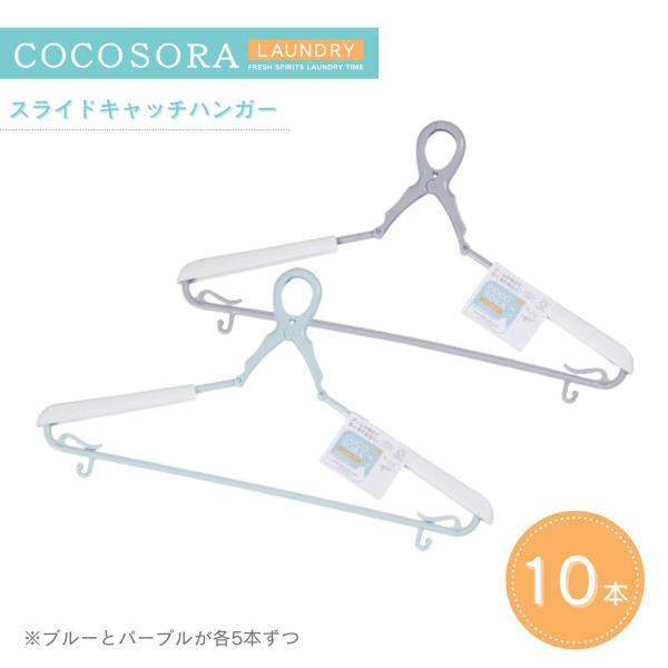 KOKUBO 洗濯ハンガー COCOSORA スライドキャッチハンガー 10個セット 伸縮 ハンガー