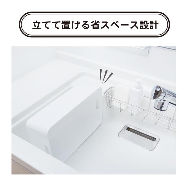 ◎片方の側面に斜めのスタンドが付いていて、横にして立てると桶の中の水が、きれいに流れ出る設計になっています。