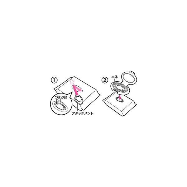 ◎袋の取り出し口に本体とアタッチメントを挟むタイプで、外れにくい。