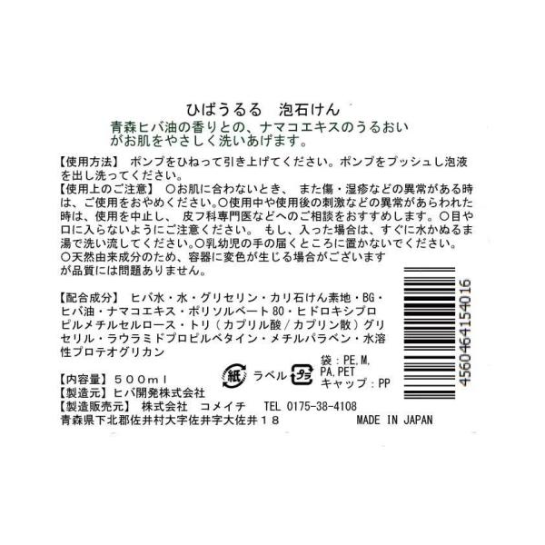 品名ひばうるる 泡石けん 500ml詰め替え