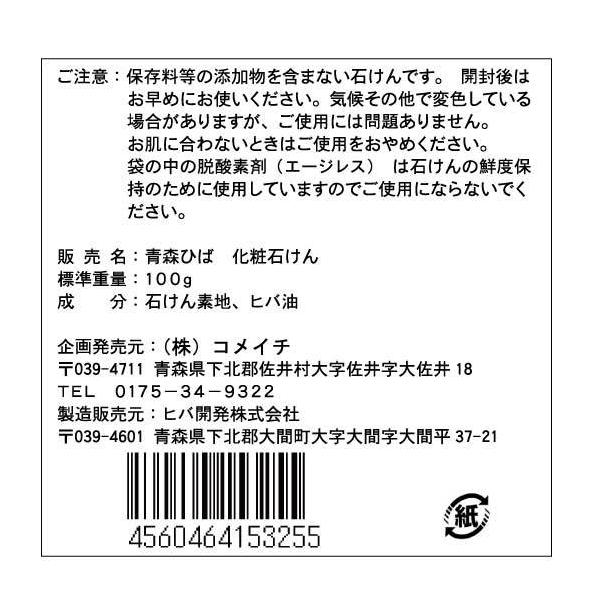 【定形外郵便配送】 青森ひば化粧石けん100g