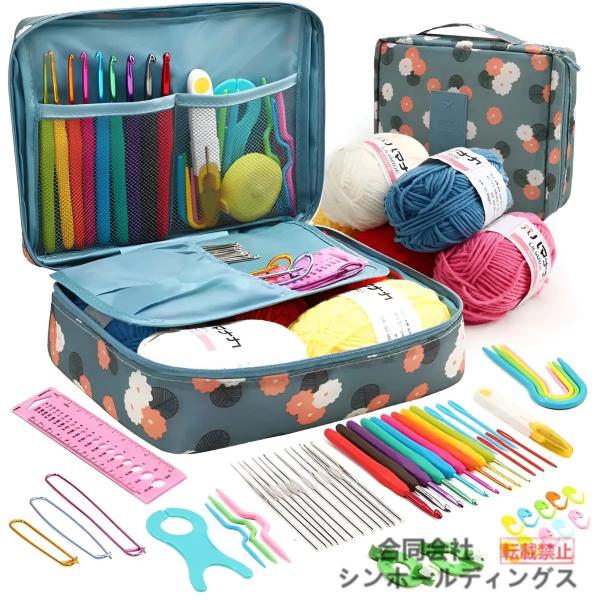 編み物 初心者 キット 59点式 かぎ針編み かぎ針セット 整理ポーチ付き 必要な道具全て付属 手芸 ニット 帽子 小物 自宅 外出先で使える
