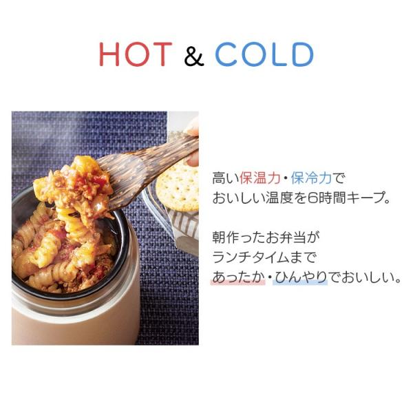 保温・保冷両用なので、温かいスープや汁物はもちろん、サラダやフルーツ、冷たい食べ物にも使用できます。