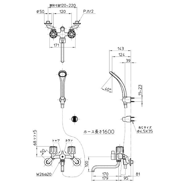 SANEI(サンエイ) ツーバルブシャワー混合栓 バス用壁付 一般地・寒冷地共用 ハンドル式 SK11−W−13