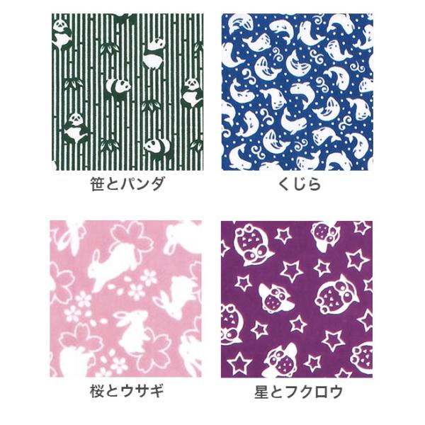 金魚(白地) / 金魚(水色) / ももうさぎ / 鈴とネコ / 笹とパンダ / くじら / 海の生き物 / 星とフクロウ / 月とフクロウ / 狐と鳥居