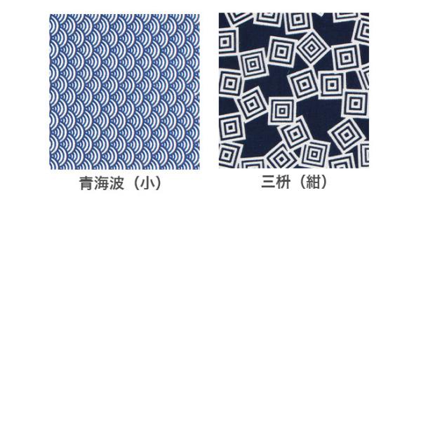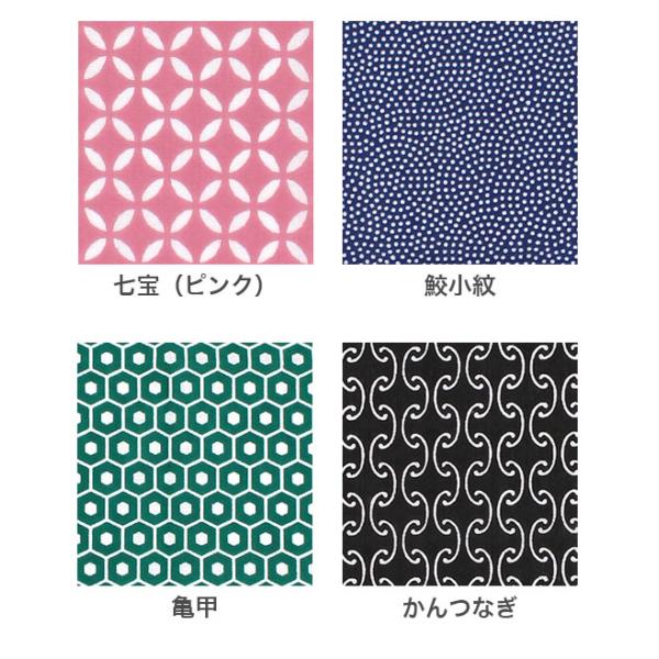 麻の葉(紺) / 麻の葉(赤)/ 鹿の子(紺) / 市松(紺)/ 七宝(ピンク)/ 鮫小紋 / 亀甲 / かんつなぎ / 青海波(小) / 三枡(紺)