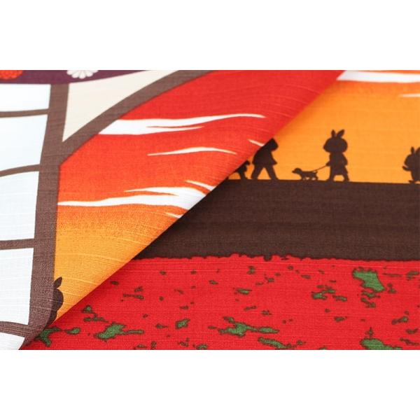 小風呂敷 お彼岸 9月 中巾 四季彩布 夕焼け 彼岸花 円窓 うさぎ 兎 約50×50cm MSF-027