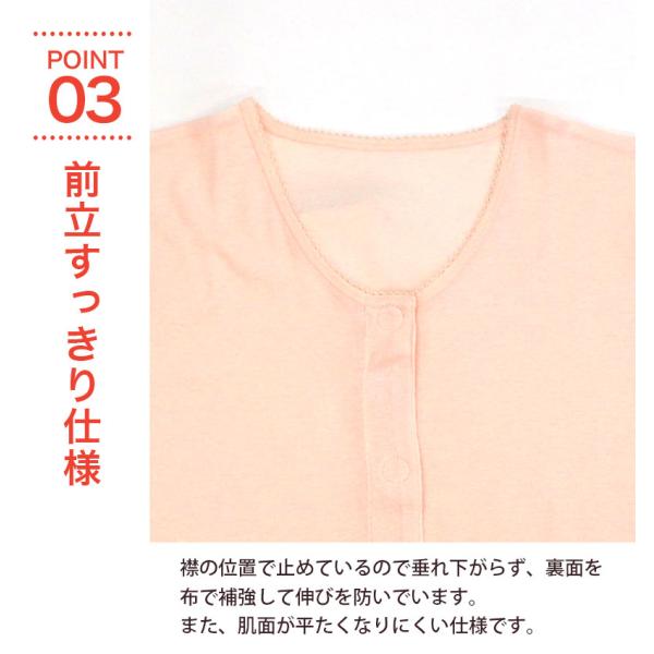 前立てすっきり仕様。襟の位置で止めてくれるので垂れさがらず、裏面を布で補強して伸びを防ぎます。