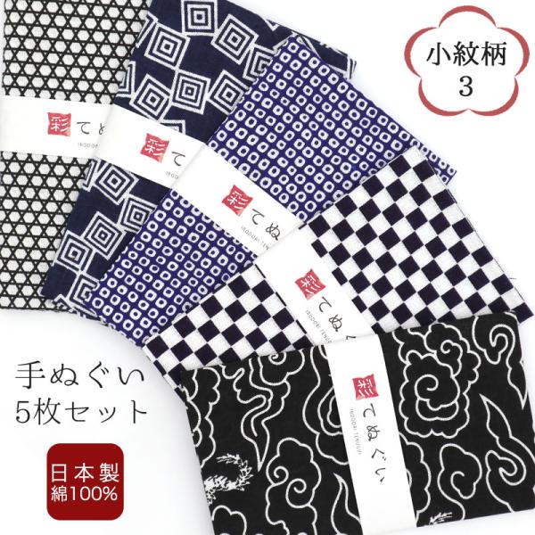 手ぬぐい 5枚セット 小紋柄3セット 日本製 手拭い 剣道 和雑貨 ハンカチ タオル 綿 ラッピング 熨斗 ふきん 洗顔 粗品 彩 irodori TE-X5-06022-IR