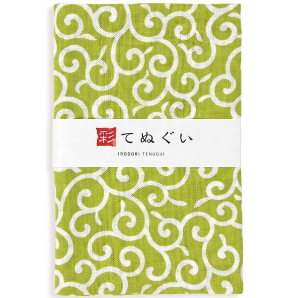 手ぬぐい 日本製 鶴と亀 鶴亀 黄緑 切りっぱなし 和柄 小紋調 綿100% 乾きやすい 昔ながら タオル ハンカチ 彩 irodori TE-06009-IR