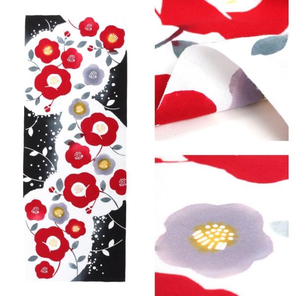 手ぬぐい 寒椿 睦月 冬 雪 つばき カメリア 花 本染 注染 日本製 和雑貨 Airashika あいらしかTE-6012-03