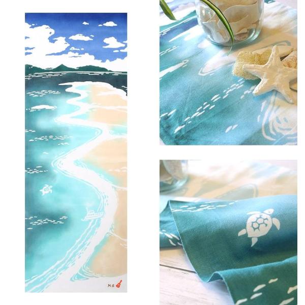 手ぬぐい ハワイ MAHALO 夏 海 タペストリー サンドバー 日本製 Airashika TE-7015-05