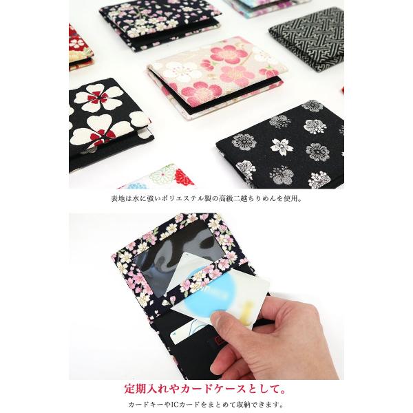 パスケース 定期券入れ カードケース JR バス 電車 suica 二つ折り 和柄 レディース 二越 ちりめん 日本製 和KOMONO 小紋工房 雑貨 UNI-0208