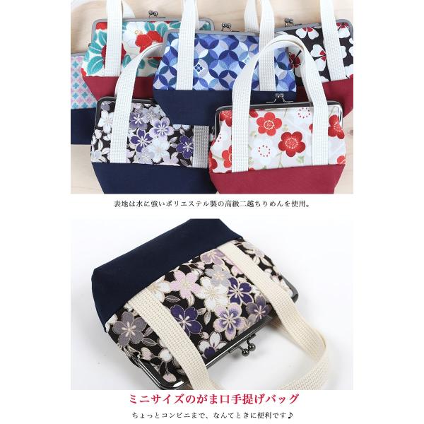 がま口手提げバッグ ハンドバッグ 和柄 レディース 二越 ちりめん 日本製 和小物 和KOMONO 京都 小紋工房 縮緬 UNI-0219
