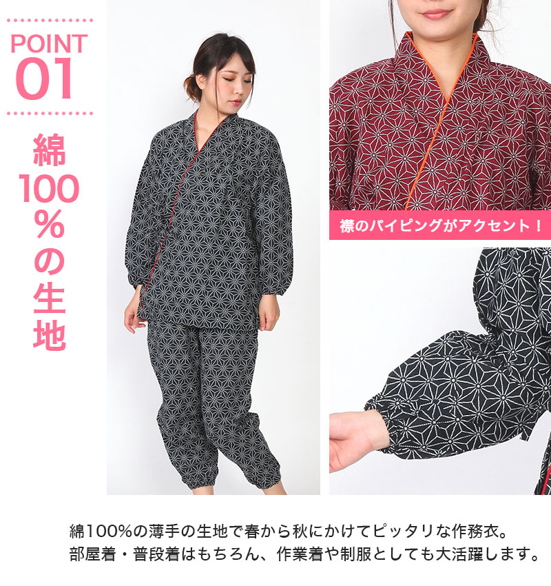 作務衣 女性 M L 作業着 部屋着 通年 レディース 婦人 W276395