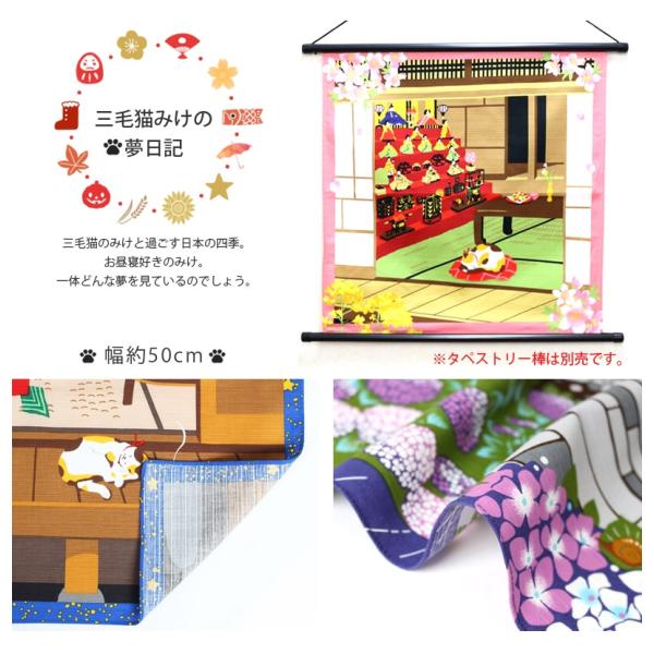 シャンタンチーフ タペストリー 和風 季節 雛祭り 風呂敷 猫