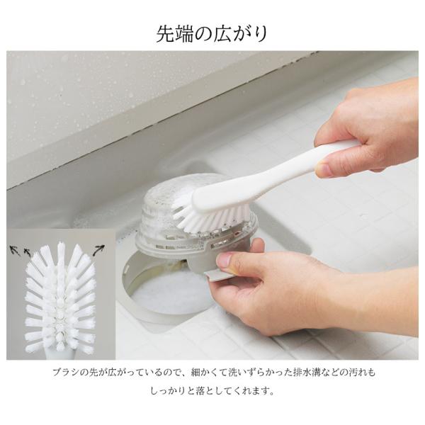 先端に向けて広がっていて、排水溝などの洗いずらい所にもしっかり洗える!