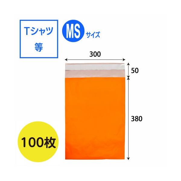 カラー宅配ビニール袋(60ミクロン)オレンジ MS 100枚 300x380+50mm 防水 高強度 宅配ポリ袋